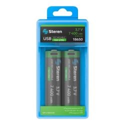 2 baterías recargables USB Li-Ion tipo 18650, de 7 400 mWh