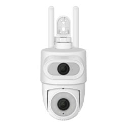 Cámara de seguridad Wi-Fi* de doble lente 2 Mpx + 2 Mpx robotizada tipo domo para exterior con seguidor de movimiento, compatible con asistentes de voz