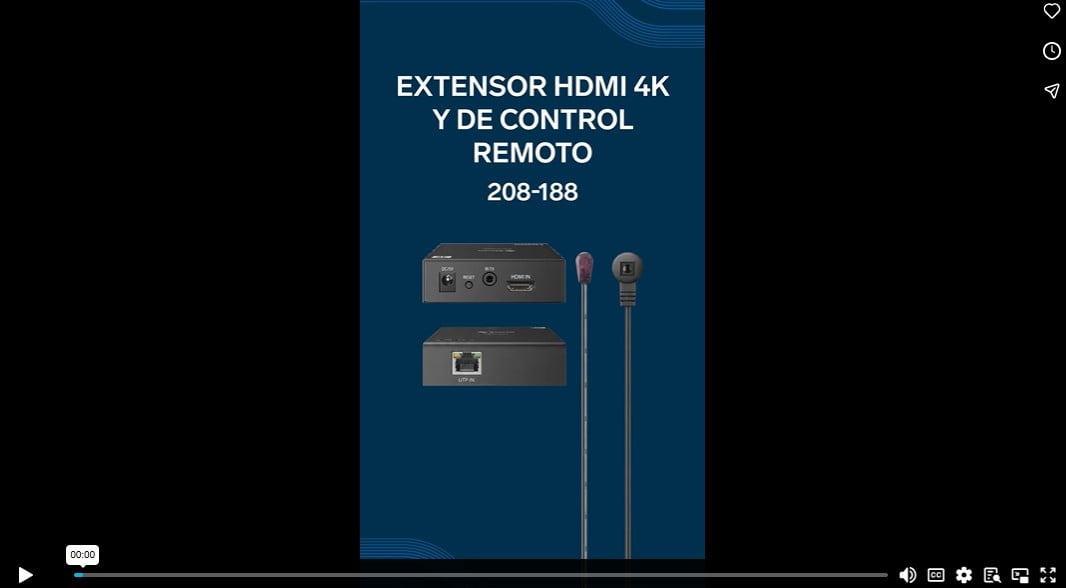 Extensor de control remoto: También, envía la señal del control remoto (IR), para manipular el equipo HDMI® sin tener que estar frente a él.