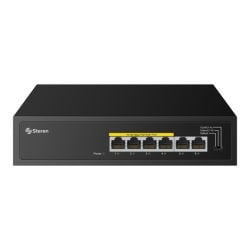 PoE: Este switch tiene 4 puertos LAN con alimentación PoE (Power Over Ethernet), exclusivos para teléfonos, puntos de acceso, controles de acceso, cámaras IP y otros equipos que soportan este tipo de conexión.